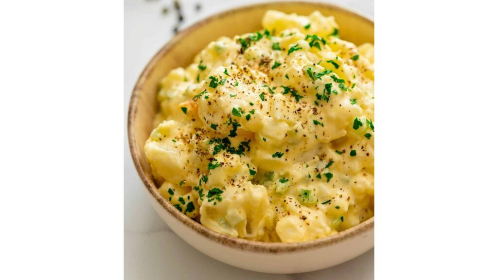 Ingredients: 5 potatoes 3 eggs 1 cup chopped celery 1/2 cup chopped onion 1/2 cup sweet pickle relish 1/4 teaspoon garlic salt 1/4 teaspoon…