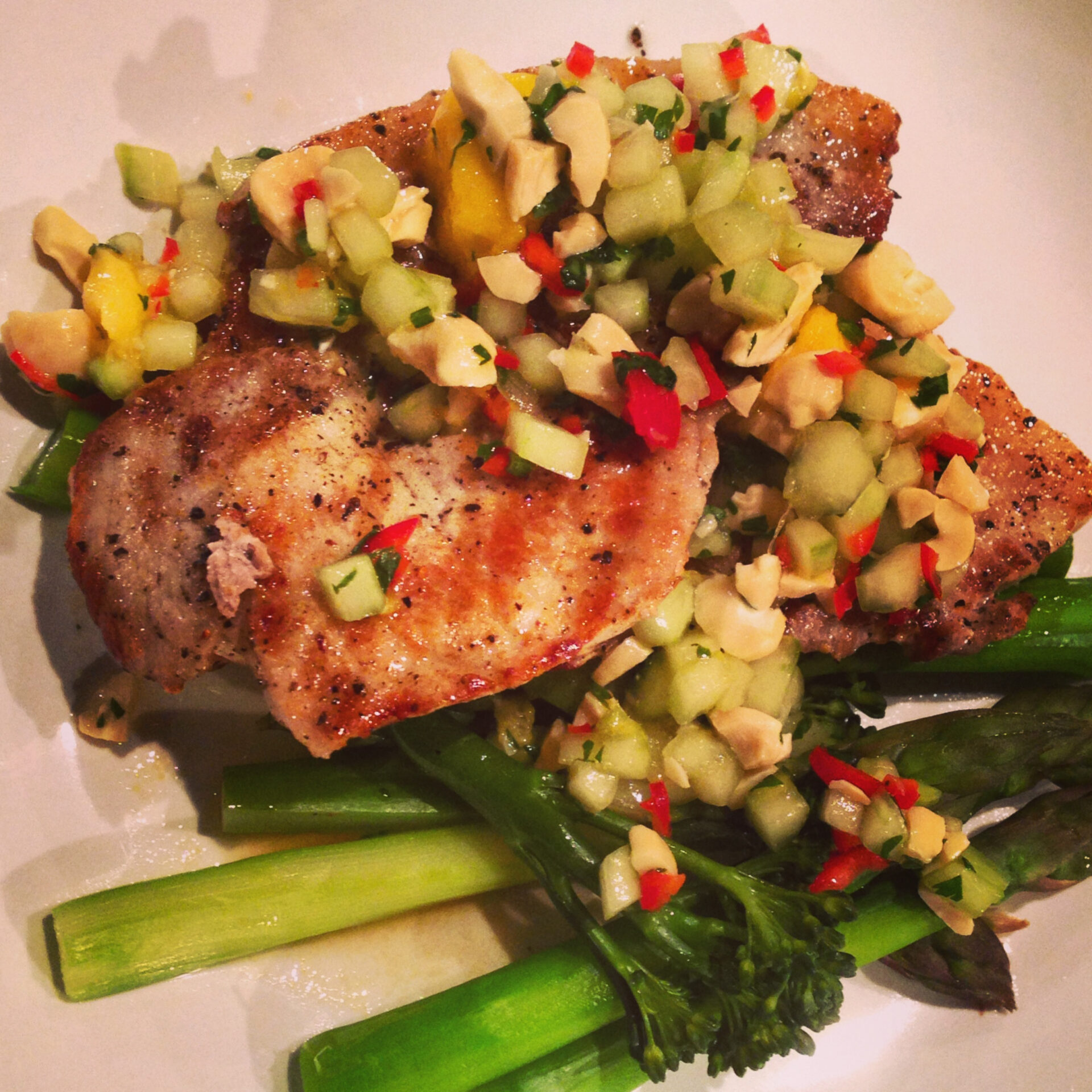 Barbecued Pork Loin with Hatch Chile Jalapeno Salsa