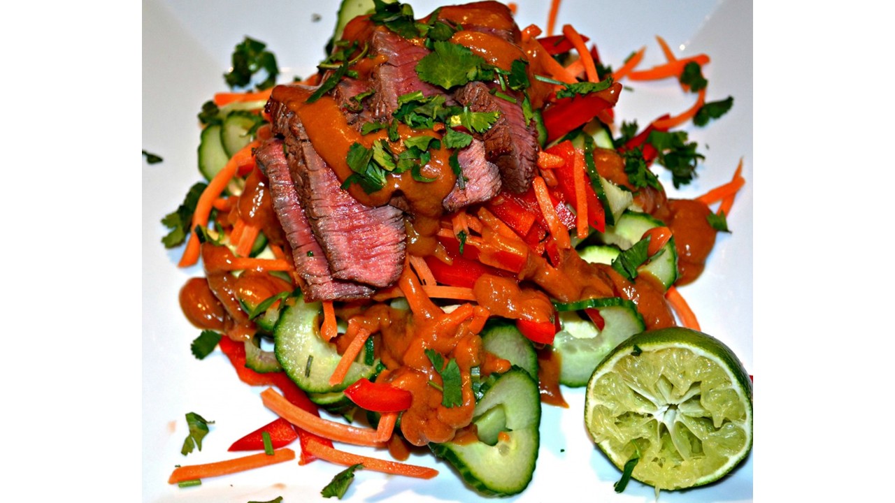 - Brush steak with 1-2 tablespoons Peppers of Key West Asian Marinade; grill over medium heat 3-4 minutes each side for medium rare.