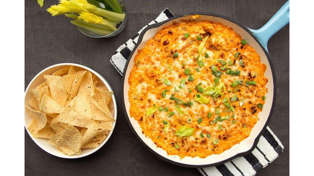 - Garnish with scallions and serve with tortilla chips and celery sticks.