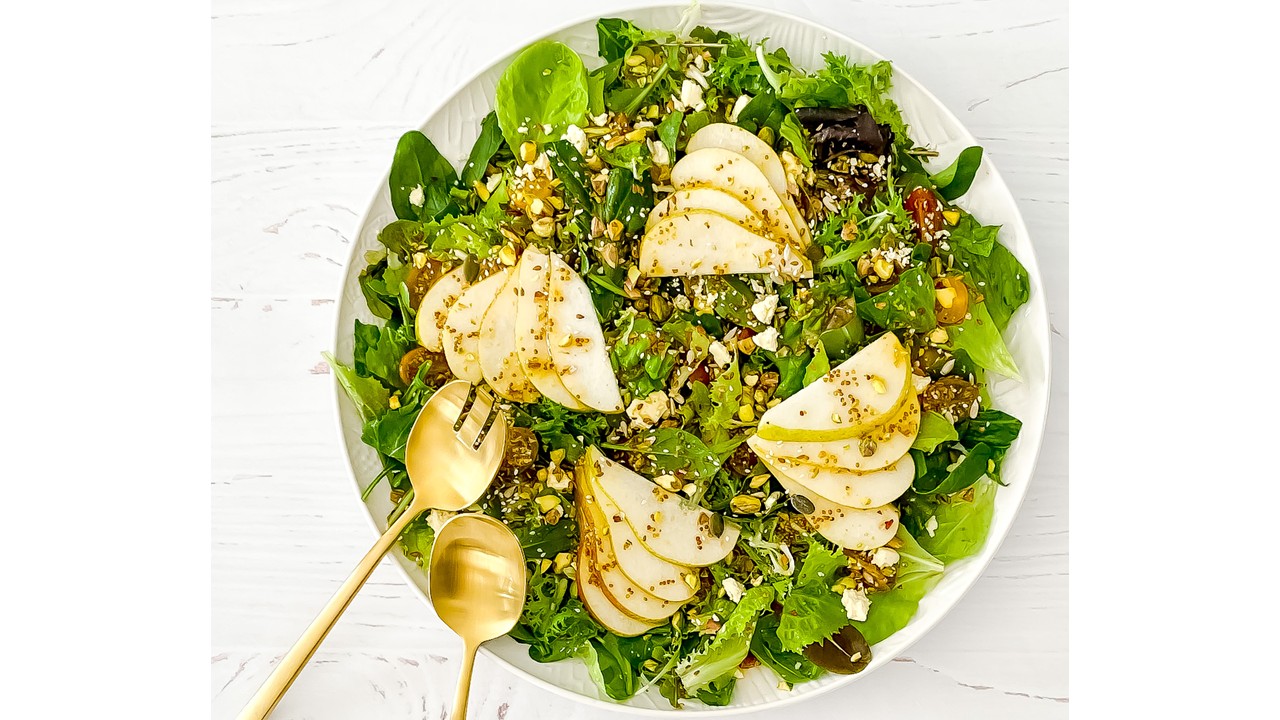 - Transfer to 4 chilled salad plates and sprinkle with pistachios.